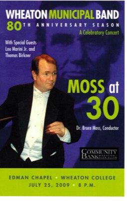 Dr. Moss and Chicago Symphony Brass Quintet members Esteban Batallan and David Griffin. From the Wheaton Municipal Band with CSO Brass Quintet concert (summer, 2023)