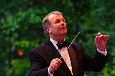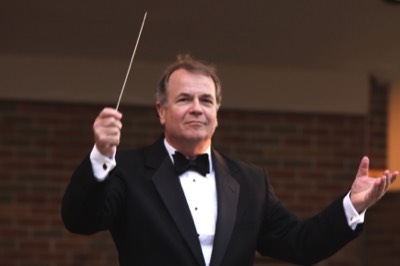 Dr. Moss on stage with the Wheaton Municipal Band at The Midwest Clinic (Dec. 2023) (photo: Bill Hayward)