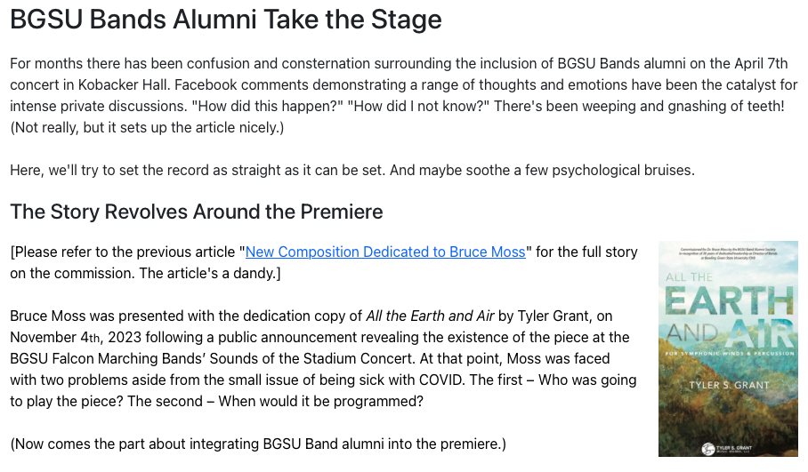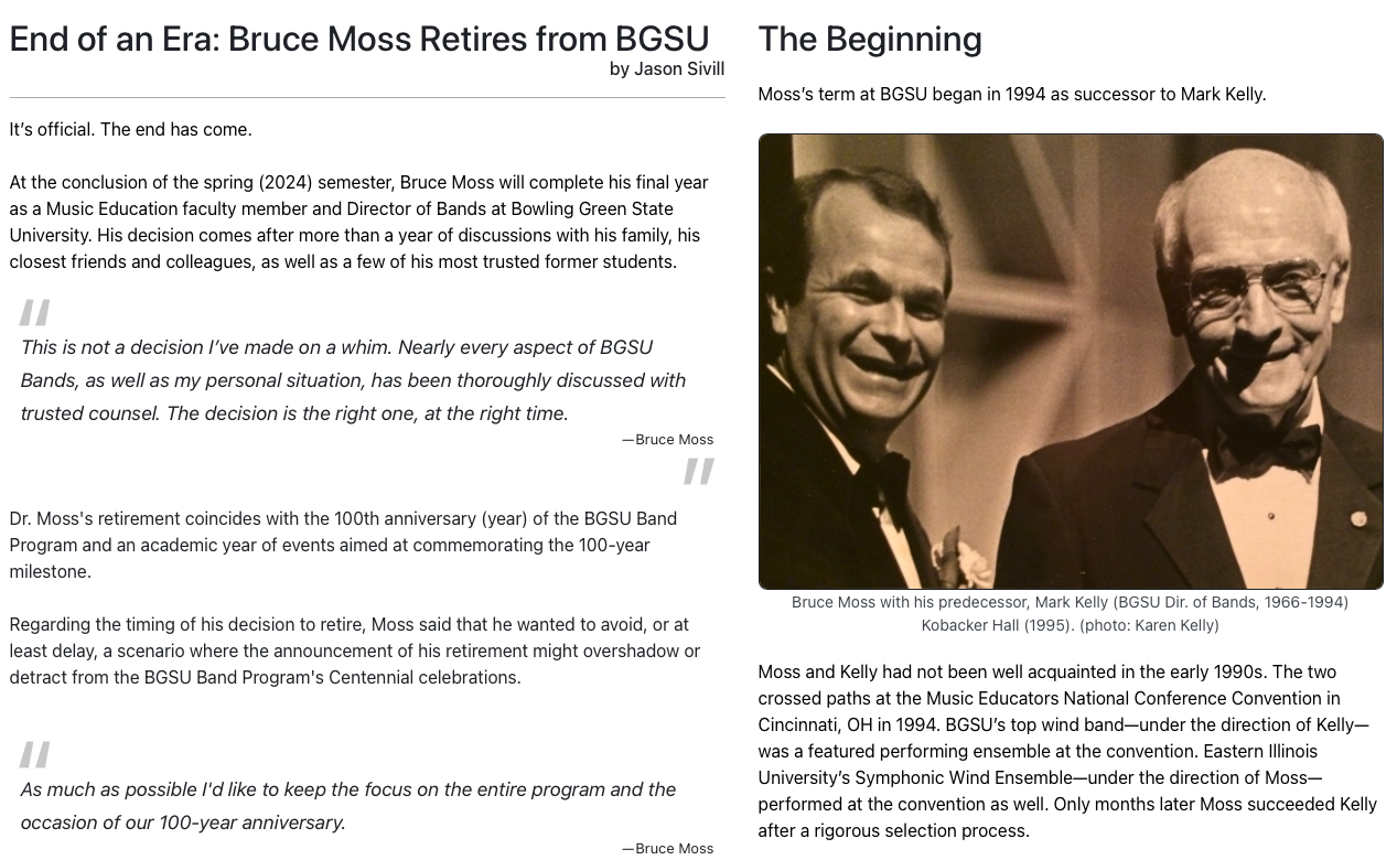 The article announces Bruce Moss's retirement from Bowling Green State University.