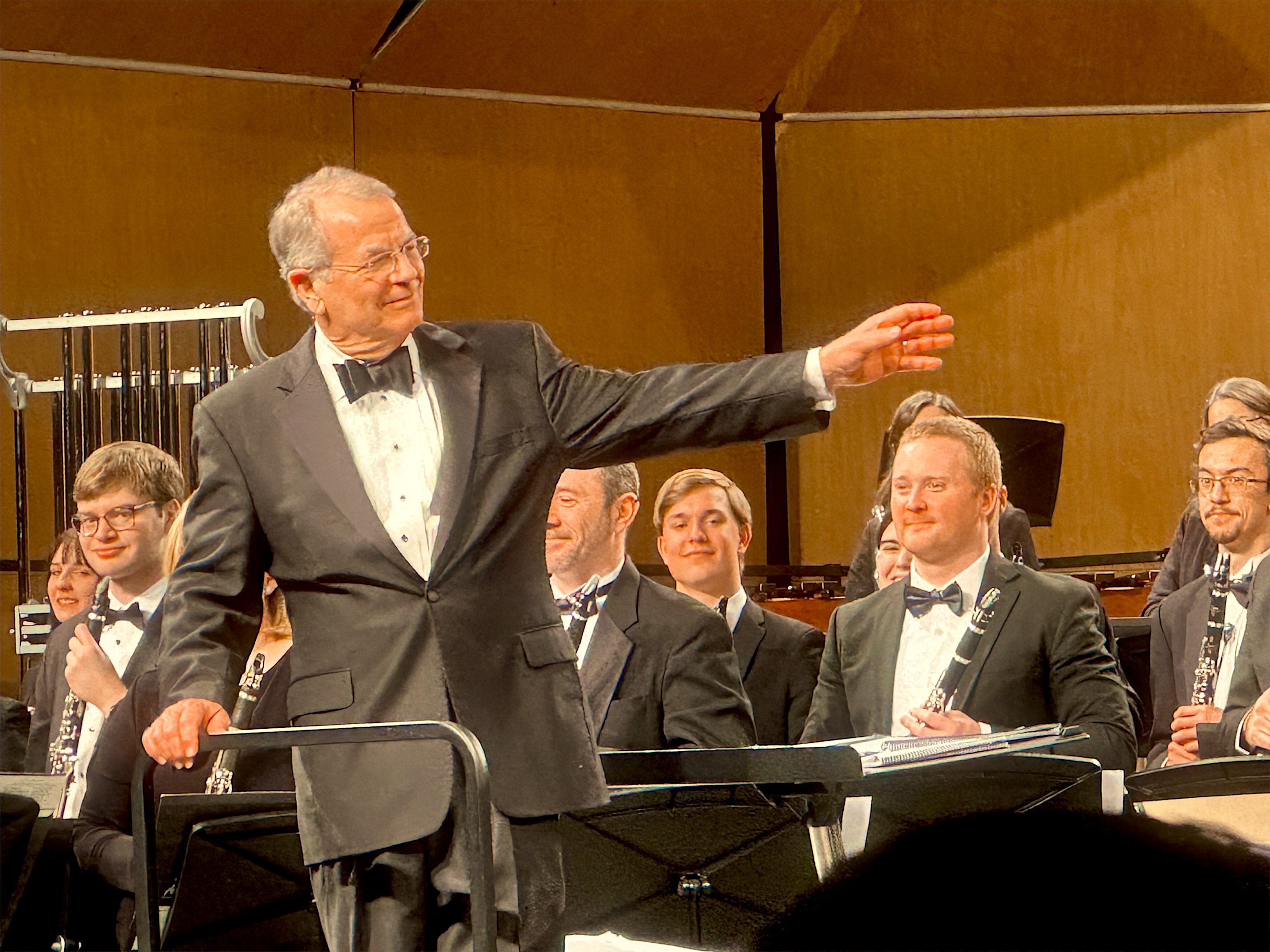 Bruce Moss on stage with the Wheaton Municipal Band at The Midwest Clinic International Band and Orchestra Festival. (December, 2023)