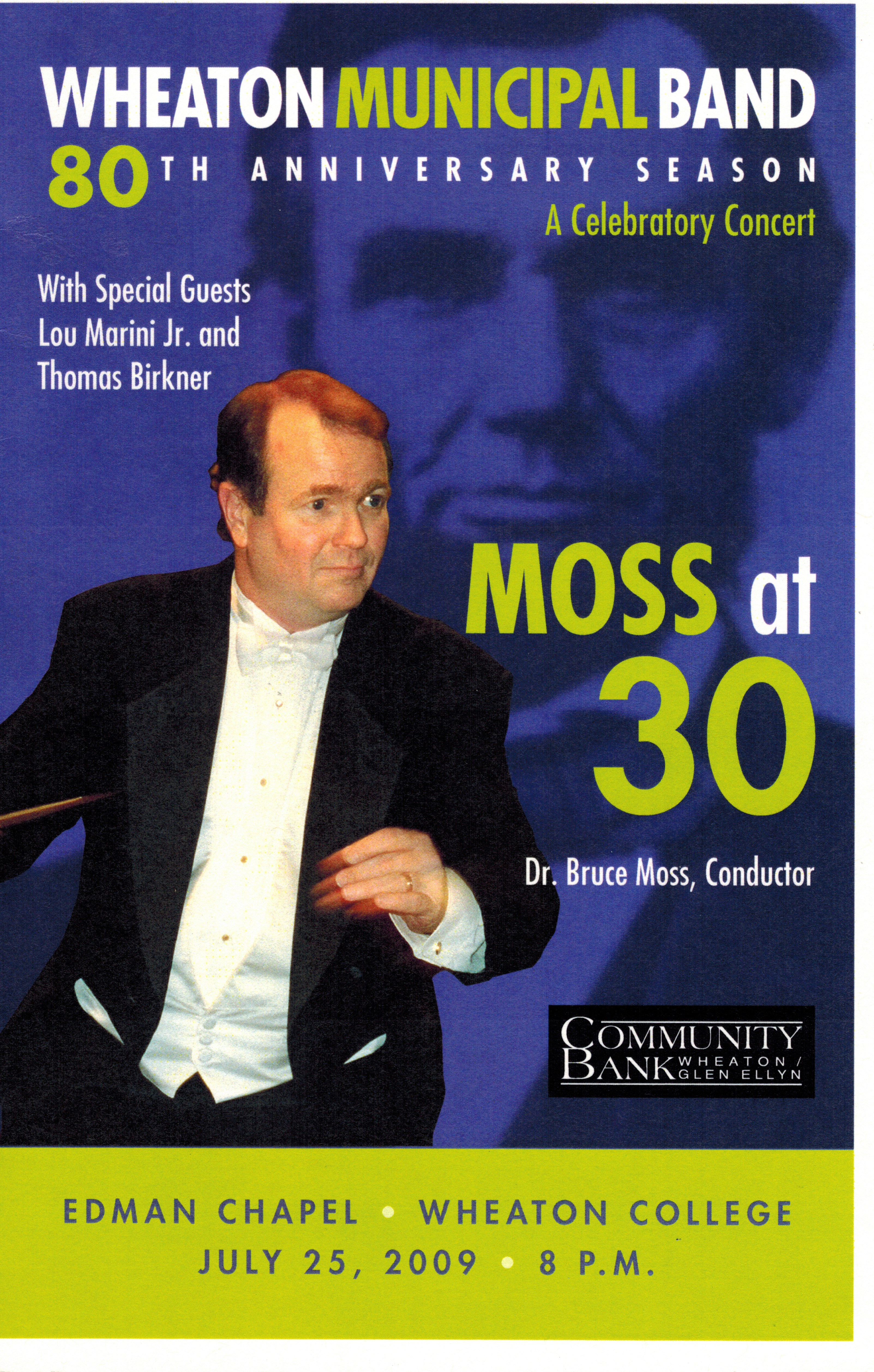 Dr. Moss and Chicago Symphony Brass Quintet members Esteban Batallan and David Griffin. From the Wheaton Municipal Band with CSO Brass Quintet concert (summer, 2023)