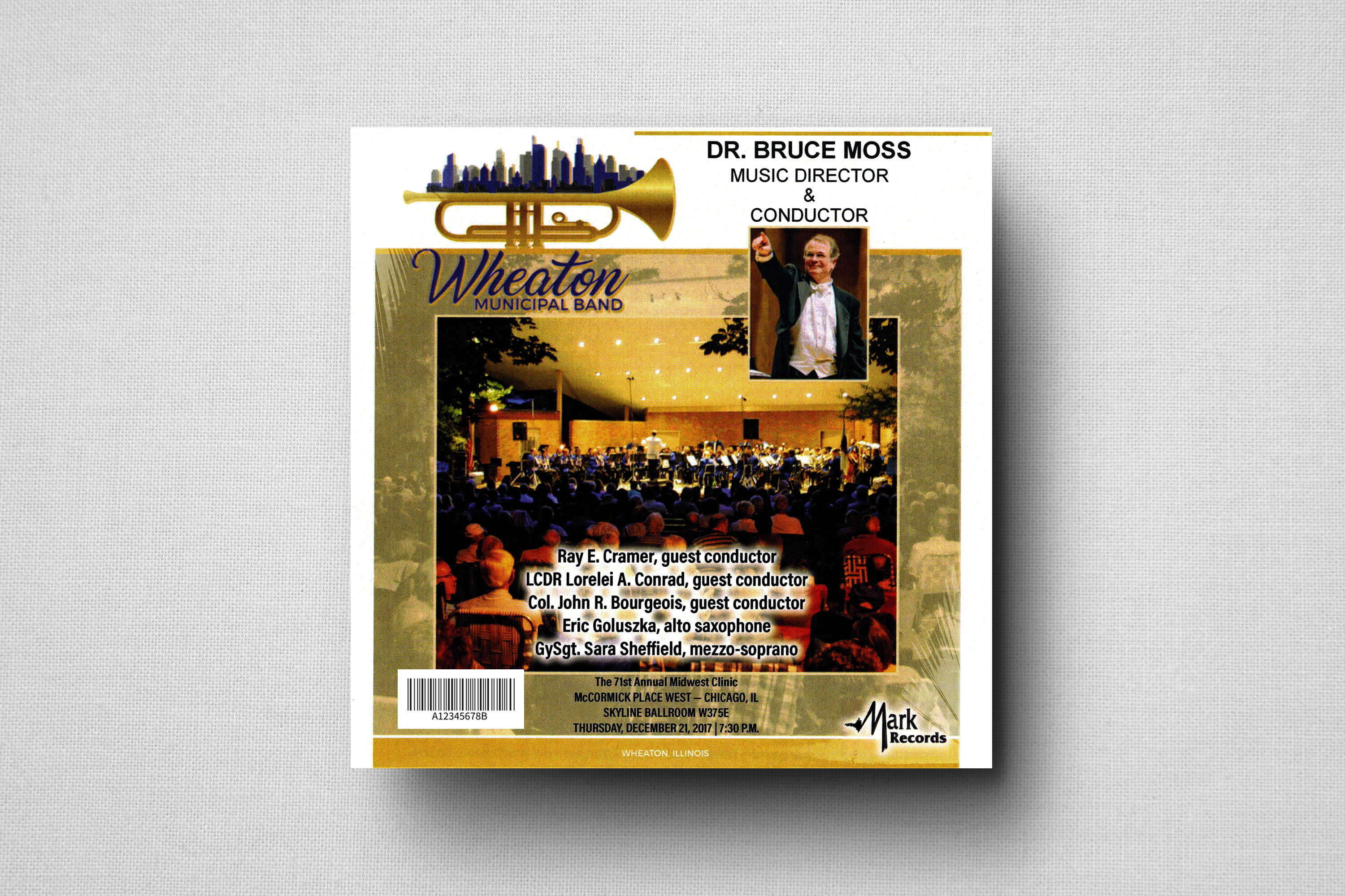 Dr. Moss on stage with the Wheaton Municipal Band at The Midwest Clinic (Dec. 2023) (photo: Bill Hayward)